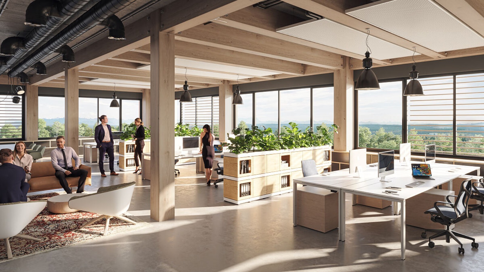 Moderne Konstruktionsmethoden und Materialien bieten in Holzhybridbauten hervorragenden Schallschutz. Mehrschichtige Wand- und Deckenkonstruktionen mit abwechselnden Holz- und Dämmstoffschichten sorgen bei Büros oder Gewerbeflächen in Holzbauweise für eine effektive Schalldämmung. Alle Decken und Trennwände im mehrgeschossigen Holzbau wie in der Timber Factory müssen dieselben Schallschutzanforderungen erfüllen wie konventionell ausgeführte Bauteile. Messungen, um den nötigen Schallschutz zu belegen, werden immer durchgeführt.