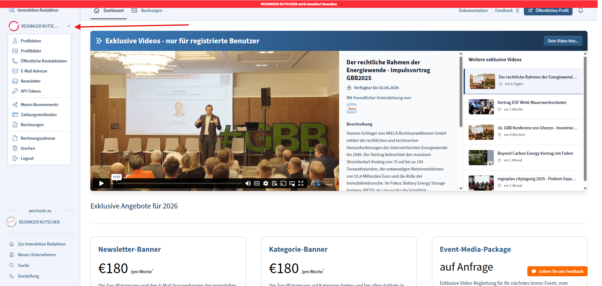 In meiner Seitenleiste erscheint einmal: Reisingerkutscher mit dem Zeichen in dem im Kreis "Wir bauen auf Substanz" steht, darunter kann ich "wechseln zu" Reisingerkutscher mit einem Logo mit einem roten Kreis.