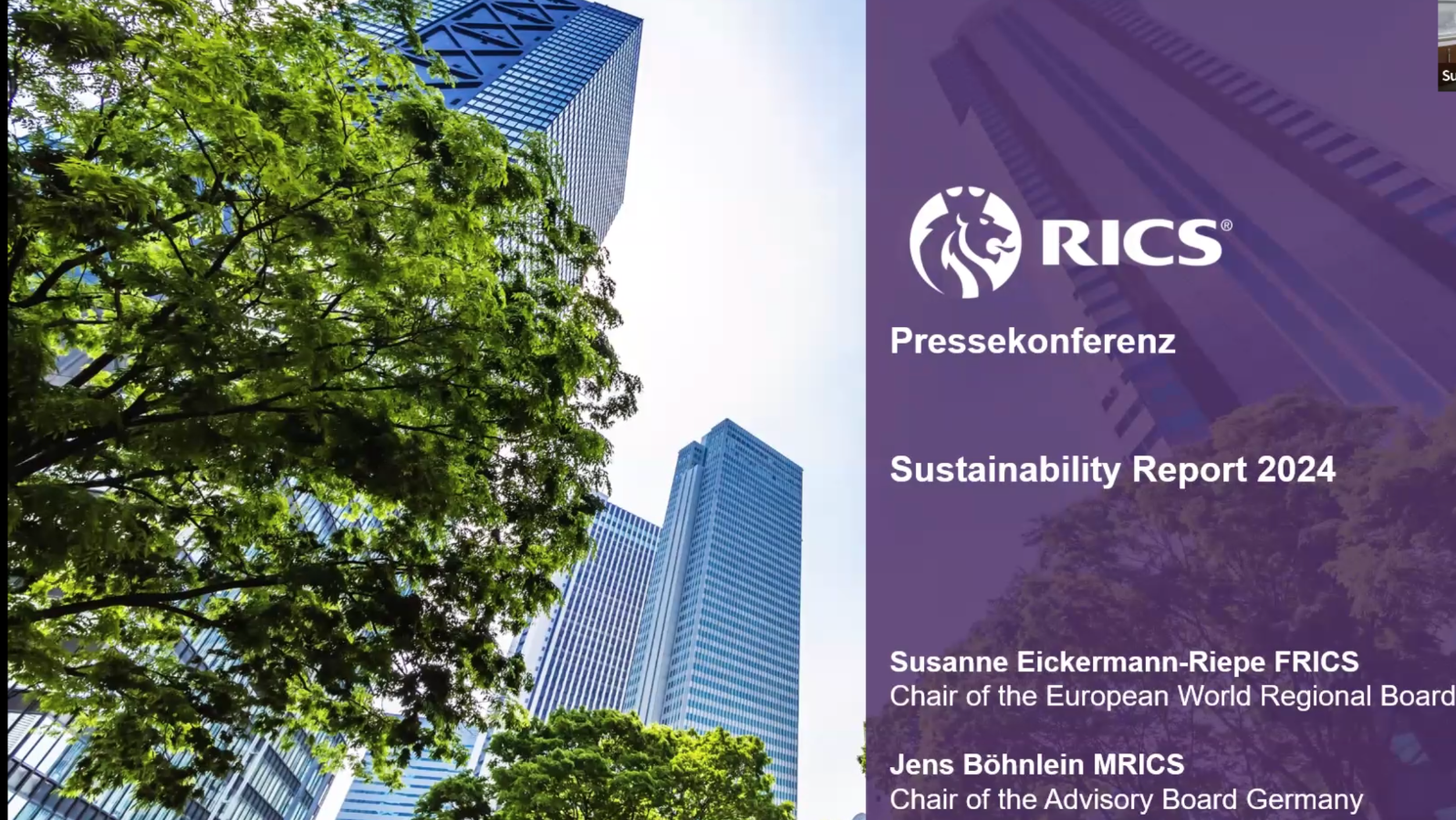 Jens Böhnlein MRICS, Vorstandsvorsitzender der RICS Deutschland: „In den letzten Jahren war vor allem das regulatorische Umfeld der Treiber von Nachhaltigkeit. Dieses Paradigma erfährt gerade eine Änderung, und spiegelt sich in einem Aufschlag für ´grüne Immobilien´ wider. In einem Marktumfeld, welches um die besten Mieter wirbt, sehen wir, dass trotz mancher Unkenrufe die ESG-bezogenen Themen weiterhin wichtig sind und deren Bedeutung zunimmt. Gleichwohl sind auch immer noch nicht alle ESG bezogenen Risiken adäquat abgebildet, und auch die hohen Anfangskosten stellen weiterhin im derzeitigen Marktumfeld eine hohe Hürde da. Dennoch, wer einen Blick auch über den deutschen Tellerrand wagt, wird feststellen, dass sich ESG bezogene Maßnahmen lohnen und die Nachfrage nach diesen Produkten sowohl von Mietern wie auch Investoren weiter steigt. Perspektivische Anforderungen an Biodiversität und Wiederverwertbarkeit werden noch stärker in den Fokus rücken werden, da sich diese auf den Kapitalwert und Spitzenmiete auswirken werden. Das zeigt, dass sich ESG sowohl für Mieter als auch Investoren nachhaltig lohnt.“
